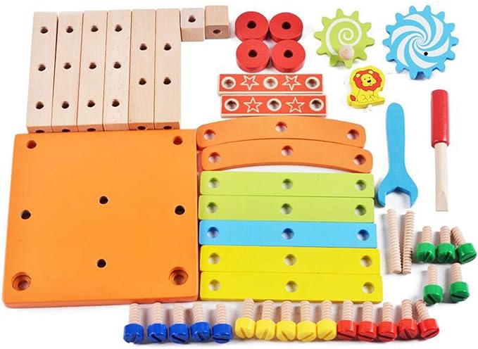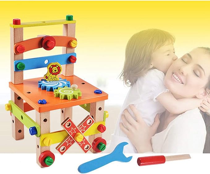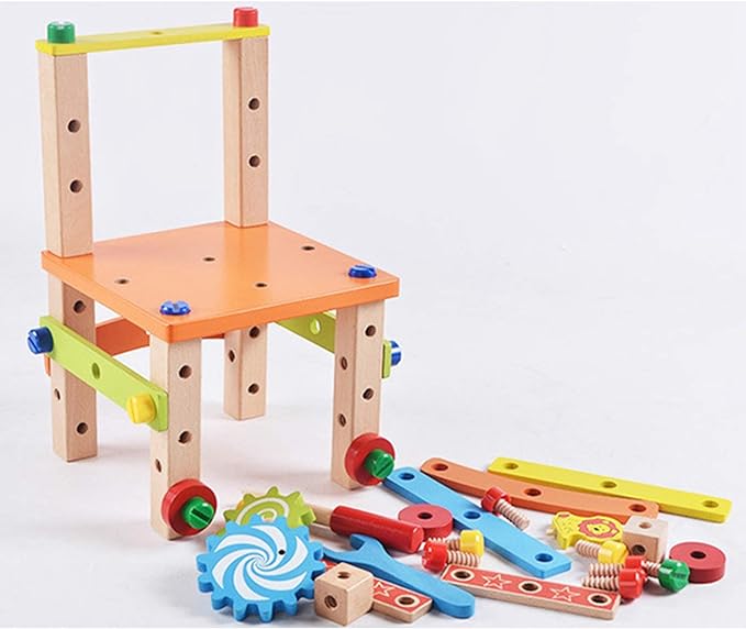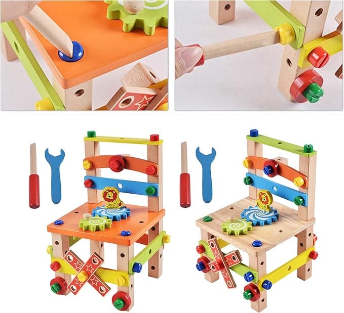 Coordination Main-Œil: Au-delà de la construction de la chaise, notre jeu éducatif offre une variété d'activités pour perfectionner la coordination main-œil. Des pièces aux formes captivantes et des écrous à assembler poussent votre enfant à explorer diverses textures et formes, favorisant ainsi un développement sensoriel et cognitif optimal.