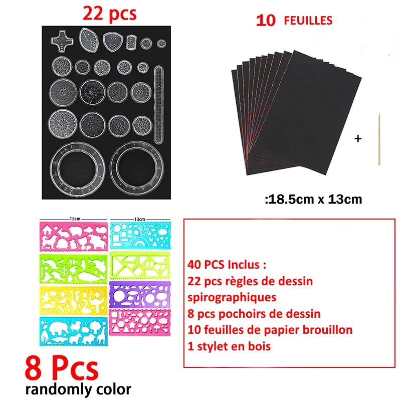 Variété de pochoirs : Cet ensemble comprend une sélection de pochoirs de dessin Spirographe, de géométrie animale et de modèles de peinture, offrant une multitude d'options pour créer des œuvres d'art uniques et captivantes.