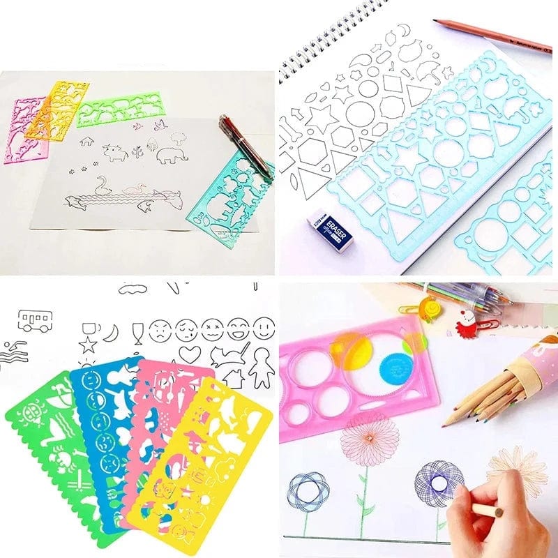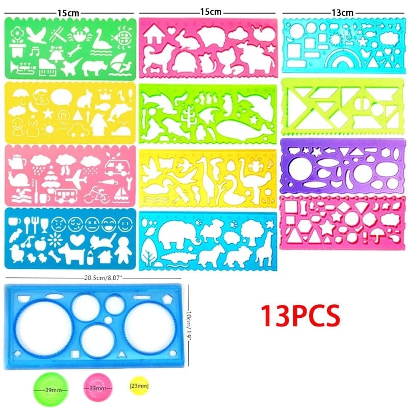Règles et outils d'artisanat : En plus des pochoirs, cet ensemble est livré avec des règles et d'autres outils d'artisanat pour aider les enfants à créer des dessins précis et détaillés.
