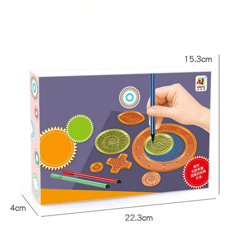 Développement Créatif : Conçu pour les enfants de 4 à 8 ans, ce jeu encourage la créativité et la motricité fine. Les enfants peuvent créer des motifs fascinants et des dessins colorés sur le papier magique inclus en utilisant les engrenages et les formes pour expérimenter différentes combinaisons.