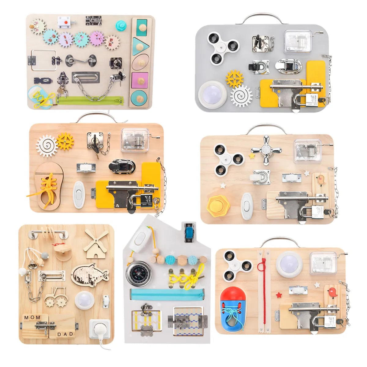 Facile à Installer et à Utiliser: Avec sa conception simple et intuitive, ce tableau d'activité peut être facilement monté sur un mur ou placé sur une surface plane. Il est prêt à être utilisé dès la sortie de la boîte, offrant ainsi une expérience d'apprentissage sans tracas.